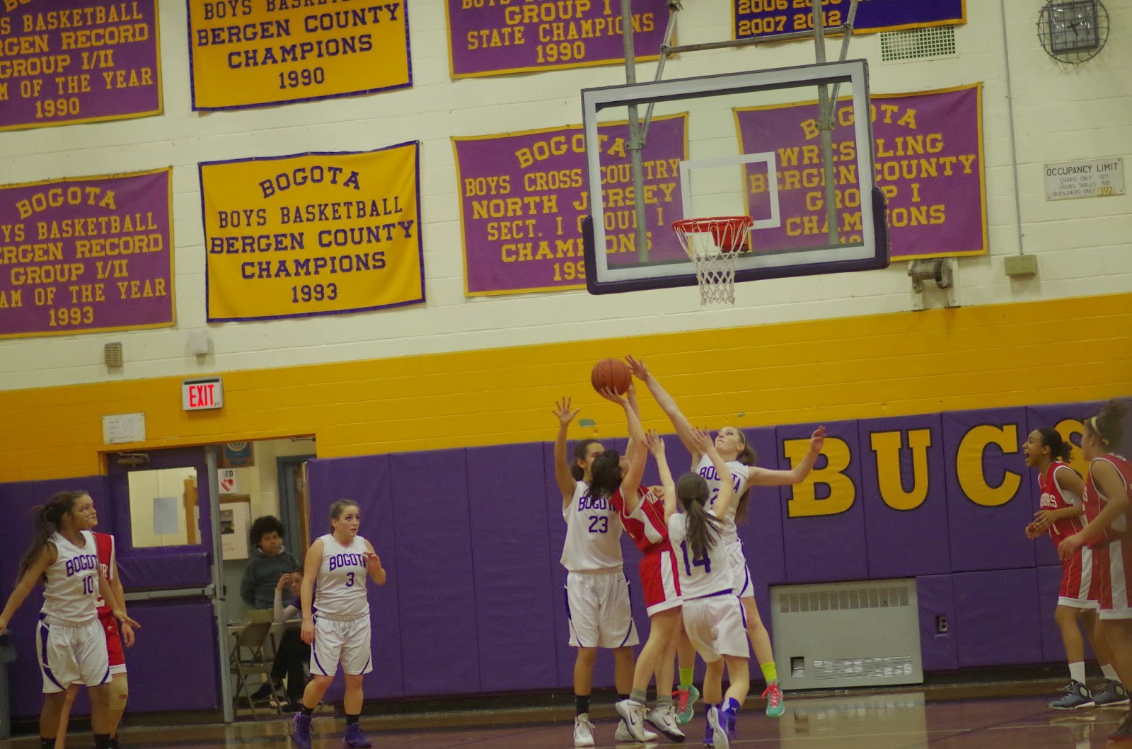 In the second game the Boys team started strong to grab an early lead and kept it for the entire game. Once with the lead Bogota control the pace of the game with their passing, and defense. The Bucs have started to learn their new system since the loss of Danny Conner, by spreading around the scoring. Anthony Ovalle led with 20 Points and Chris Alcartara added another 18 Points. Ovalle also  had a game high of 5-three point baskets along with Andrew Raid making 4-three point shots.  Kenny Dixon grabbed 10 rebounds in the 76-36 victory by Bogota.  Their next game is at Midland Park on Tuesday 20-Jan. The game is scheduled to start at 7:00p