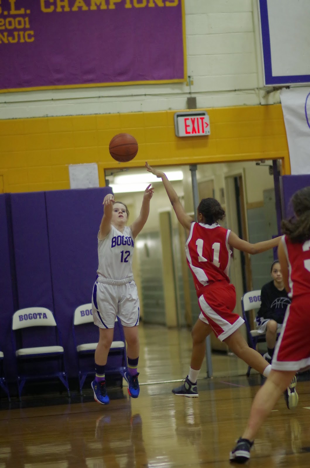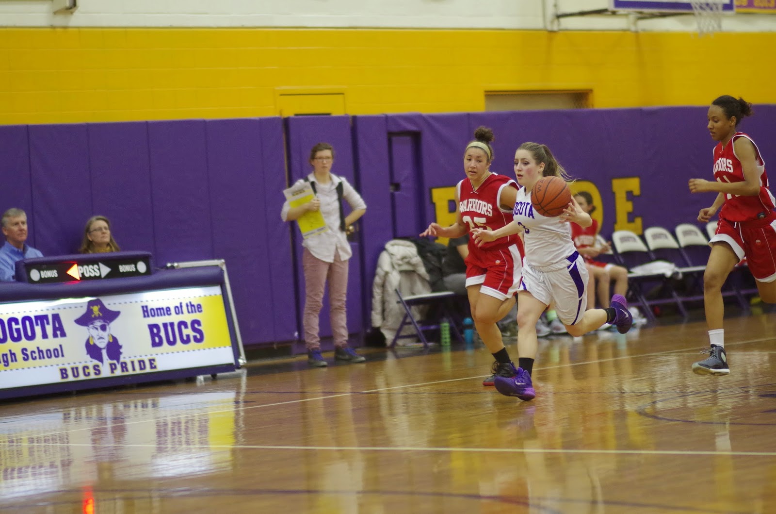 The Bogota Bucs Basketball teams play a doubleheader against Green  Meadow of New York on Friday 16-Jan. These games were played at Speary  Gym. The Lady Bucs played in the opener and took an early lead after one quarter. The Lady Warriors took advantage of their shooting to  go into the half with a 7-10 lead. After the restart, Coach Kennedy had his team press the Green Meadows offense which caused a number of turnovers. Bogota took full advantage, and started connecting on their shots.  Bogota scored a 21 point third quarter to take command of the game for a 40-15 victory.   Emma O’Brien lead the team in scoring with 10 Pointers including 2-three point baskets, Alanan O’Brien also made 2-three points scores. The Lady Bucs lost the next day (Saturday 1-17)  at home against Saddle Brook by the score of 20-47. They play home again at Speary Gym on Tuesday, January20, against Midland Park. Tip off is scheduled for 4:00pm.